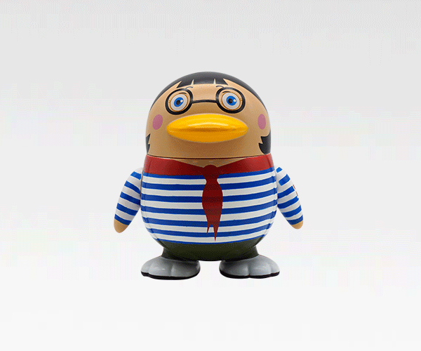 學(xué)生鴨戴著鮮紅的紅領(lǐng)巾,穿著藍白相間的衣服外形。一副靦腆呆萌的表情體現(xiàn)出生動學(xué)生氣息。